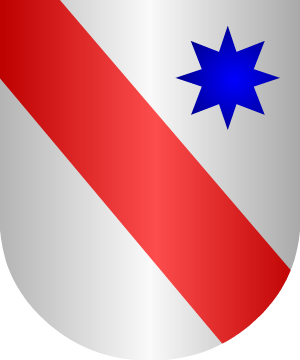 tienen: En campo de plata, una banda jaquelada de gules y oro, en dos órdenes,