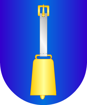 82.- Otros: En campo de plata, una banda, de azur y saliendo de ella, un guerrero, de oro con una espada en la mano.