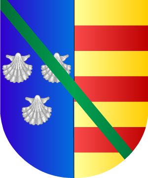 tienen: En campo de plata, una banda jaquelada, de gules y oro, en dos órdenes,