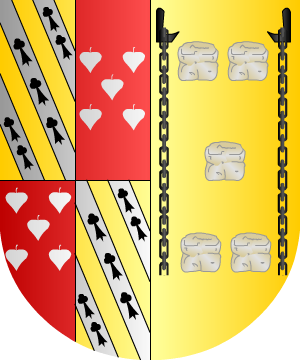 Aedo, pero sin las panelas. 12.- Diego de Soto y Aguilar señala para la casa del valle de Carranza: En campo de oro, dos calderas de sable, barradas de plata. 13.- Otros traen: En oro, una cruz llana, de gules, cargada de cinco panelas, de oro. 14.- Otros: En campo de plata, un bastón, de gules. 15.- Los radicados en California (Estados Unidos) y Canadá, según Vicente de Cadenas: En campo de oro, sembrado de corazones, de gules. 16.- Otros, según Juan Carlos de Guerra: En campo de azur, un grifo rampante de oro. 17.- Un caballero del solar del lugar de Aedo, que por enlace con una hembra de la casa de Velasco fue a parar al valle de Mena, adoptó por armas, según el testimonio de Miguel de Salazar y Juan de Mendoza, las siguientes: En sinople, una torre de oro, aclarada de gules. 18.- Otros Haedo: En campo de plata, dos panelas, de gules, puestas en palo y acompañadas en su diestra, de una torre, de su color. 19.- Los de Valmaseda, y sus ramas en Bilbao y San Sebastián, según Vicente de Cadenas, traen: En campo de sinople, tres fajas, ondeadas, de azur y plata. 20.- Los del valle de Carranza, según Francisco Piferrer, traen: En campo de oro, un árbol terrasado y copado, con un lebrel atado al tronco, azorado por una serpiente, puesta en la copa del árbol, en ademan amenazador. 21.- En los lugares de Ahedo, Manzaneda de la Sierra y San Esteban, todos pertenecientes al valle de Carranza, constan estas armas para los Ahedo: Un árbol arrancado, con dos lobos pasantes al pie del tronco, puestos en palo. 22.- Los de Valmaseda, según Jorge de Montemayor, traen: En campo de oro, un árbol de sinople, y dos perros andantes, manchados, y encima del árbol, una sierpe de su color. 23.- En la casa de Ahedo Gómez, del lugar de Bollaín, en el valle de Carranza, constan las siguientes armas para los Ahedo: Un árbol, con un lobo pasante y atado al mismo. 24.- En Rasines (Cantabria) consta este otro escudo: Escudo partido: 1º, un árbol arrancado con dos lobos pasantes al tronco, y 2º, un perro o lobo atado a un árbol, y en jefe una sierpe. Al lado derecho del árbol una flor de lis, y al izquierdo un castillo. 25.- Diego de Ahedo y Ochoa, Arzobispo de Palermo, usaba por armas: Escudo partido: 1º, un árbol con dos lobos pasantes, uno sobre el otro, y 2º, cortado: primero, una cruz de Calatrava, y segundo, un castillo (Armas de los apellidos Ahedo y Ochoa). 26.- En las Encartaciones hubo Aedo que usaron este escudo partido: 1º, en campo de azur, un árbol de su color y un lebrel de plata atado a su tronco, y 2º, en campo de oro, una cadena de sable de ocho eslabones y una flor de lis del mismo color en el cantón siniestro de la punta. 27.- Otros en las Encartaciones hubo Aedo que usaron este escudo partido: 1º, en campo de azur, un árbol de su color y un lebrel de plata atado a su tronco, y 2º, en campo de oro, una cadena de sable de ocho eslabones y una flor de lis del mismo color en el cantón siniestro del jefe. 28.- Los de las Encartaciones de Vizcaya, según Juan Baños de Velasco, y los de Vizcaya, según Miguel de Salazar, traen: En campo de oro, un árbol de sinople, y al pie de él un perro de sable, atado con traílla de azur. Complemento de información de estos linajes por cortesía de blasonari.net |