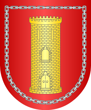 pie del tronco. Bordura de gules, con ocho veneras de plata. 4.- Los originarios de Castilla y León, radicados en Cuenca, pasados a La Plata (Argentina), según Vicente de Cadenas, usan: En campo de gules, cinco fajas de oro, resaltadas de un castillo de azur, almenado, mazonado de sable y aclarado de gules. Brochante sobre el todo en banda, una cadena de sable. 5.- Vicente de Cadenas señala que otros radicados en Cuenca y pasados a La Plata usan: En campo de gules, cinco fajas de oro, resaltadas de un castillo de azur, almenado, mazonado de sable y aclarado de gules. 6.- Los radicados en Fuentestrún (Soria) usan: En campo de gules, una mano cerrada con el índice indicando hacia la diestra del escudo. 7.- Los originarios de Zamora y radicados en Madrid y Venezuela, según Vicente de Cadenas, traen: En campo de gules, una torre de oro. En orla, una cadena de plata. 8.- Los de Ecuador usan: En campo de plata, un árbol de sinople, arrancado y acompañado de tres estrellas de azur. 9.- Los originarios del Reino de Valencia, radicados en Alicante, Elche y Perú traen: Escudo partido: 1º, en campo de gules, cinco panelas de oro, puestas en aspa, y 2º, en campo de plata, una tao de azur. 10.- Los originarios de Aspe (Alicante), según Vicente de Cadenas, usan: Escudo partido: 1º, en campo de gules, cinco panelas de oro, puestas en aspa, y 2º, en campo de plata, un árbol de sinople, acompañado de tres estrellas de azur. 11.- Otros: En campo de plata, una cruz de San Antonio de azur. Información de estos linajes por cortesía de blasonari.net |