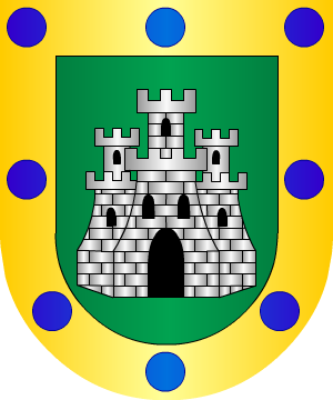 traen: En campo de oro, un árbol de sinople y un león rampante,