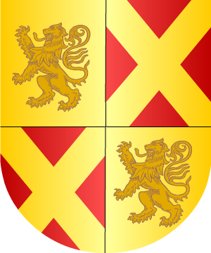 plata, cada una con un león rampante de gules, y de catorce piezas de