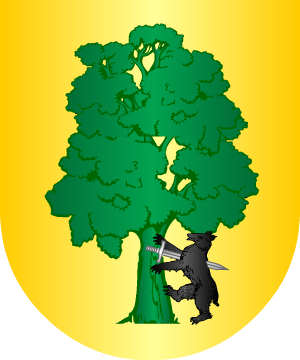 De Azcoitia (Guipúzcoa). Armas Trae por armas: De oro, un roble de sinople terrazado de lo mismo, y a su pie dos guerreros, uno hiriendo a otro, vencido y caído en tierra, y entregando a su vencedor una bandera de gules. |
