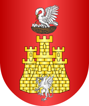 traen: Escudo cuartelado: 1º, de sinople, con dos columnas, de plata, sobre