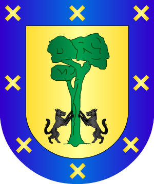 al pie del árbol. 16.- Otros, según Juan José Vilar y Psayla, traen: En campo de gules, una banda de oro con dragantes del mismo metal, lampasados de gules, y en la parte superior un brazo armado que sostiene una bandera de diferentes colores, con medias lunas moriscas de plata, y en la parte baja un árbol de sinople, salpicado de oro, con una lanza arrimada al mismo, y un caballo blanco embridado y ensillado. 17.- Los Benítez de Lugo, originarios de Garachico (Tenerife), según Vicente de Cadenas, traen: Escudo cuartelado: 1º y 4º, en campo de gules, una banda de oro, engolada en dos dragantes, de sinople, y 2º y 3º, en campo de gules, dos espigas, de oro, puestas en aspa y resaltadas de una cruz flordelisada, de sinople. 18.- Antonio Benítez de Lugo y de la Cantera, nacido en La Habana el 7 de Octubre de 1857, Caballero de la Orden de Santiago desde 1883, primer Marqués de Santa Susana concedido el 27 de Febrero de 1893, en atención a los méritos y servicios de su tía Susana Benítez y Pérez de Abreu, ilustre benefactora, que fundó asilos y colegios en La Habana para ancianos y niñas pobres, usaba por armas: Escudo cuartelado: 1º y 4º, en campo de gules, una banda de oro, engolada en dragantes, de sinople, que es de Benítez, y 2º y 3º, en campo de gules, dos espigas, de oro, puestas en aspa, y resaltadas de una cruz flordelisada, de oro, vacía de sinople, que es de Lugo. 19.- Los apellidados Benítez de Tena, radicados en La Paz (Bolivia), usan: En campo de sinople, una banda, de sable, cargada de cuatro garras de águila, de oro. Información de estos linajes complementada por cortesía de blasonari.net |