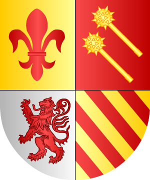 de gules, una banda de oro con dragantes de sinople. Información de estos linajes complementada por cortesía de blasonari.net |