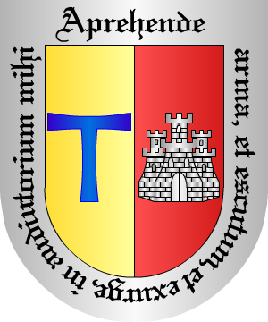 mazonada de sable. 23.- Otros de Cataluña: Escudo cuartelado: 1º y 4º, en campo de plata, una torre de gules, con la puerta de plata y mazonada de sable, y 2º y 3º, en campo de oro, un lambel con un pendiente de azur. 24.- Los Berenguer, descendientes de los Condados de Barcelona y Cerdaña, según Juan José Vilar y Psayla, traen: En campo de plata, dos cruces de San Jorge, cortinado de gules con tres bastones de oro. 25.- Otros Verenguer: En campo de oro, una encina, de sinople, con un lobo, de sable, alzado a su copa. 26.- Otros: Escudo partido: 1º, tres fajas, y 2º, un castillo. Bordura cargada de sotueres. Complemento de información de estos linajes complementada por cortesía de blasonari.net |