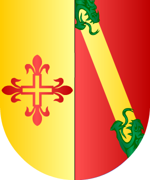mazonada de sable. 23.- Otros de Cataluña: Escudo cuartelado: 1º y 4º, en campo de plata, una torre de gules, con la puerta de plata y mazonada de sable, y 2º y 3º, en campo de oro, un lambel con un pendiente de azur. 24.- Los Berenguer, descendientes de los Condados de Barcelona y Cerdaña, según Juan José Vilar y Psayla, traen: En campo de plata, dos cruces de San Jorge, cortinado de gules con tres bastones de oro. 25.- Otros Verenguer: En campo de oro, una encina, de sinople, con un lobo, de sable, alzado a su copa. 26.- Otros: Escudo partido: 1º, tres fajas, y 2º, un castillo. Bordura cargada de sotueres. Complemento de información de estos linajes complementada por cortesía de blasonari.net |