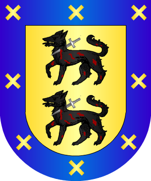 mazonada de sable. 23.- Otros de Cataluña: Escudo cuartelado: 1º y 4º, en campo de plata, una torre de gules, con la puerta de plata y mazonada de sable, y 2º y 3º, en campo de oro, un lambel con un pendiente de azur. 24.- Los Berenguer, descendientes de los Condados de Barcelona y Cerdaña, según Juan José Vilar y Psayla, traen: En campo de plata, dos cruces de San Jorge, cortinado de gules con tres bastones de oro. 25.- Otros Verenguer: En campo de oro, una encina, de sinople, con un lobo, de sable, alzado a su copa. 26.- Otros: Escudo partido: 1º, tres fajas, y 2º, un castillo. Bordura cargada de sotueres. Complemento de información de estos linajes complementada por cortesía de blasonari.net |