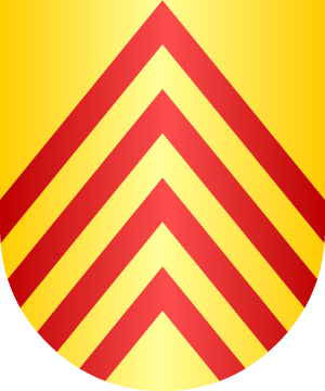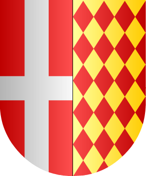 y que usaron incontrovertiblemente desde el principio del siglo XIII. 2.- El lema es: "Fortitudo ejus Rohdum tenuit". Por eso varias ramas usan la cruz cantonada de las cuatro letras F. E. R. T, puestas una en cada hueco. 3.- Los García de Blanes cuartelan esas armas con las de los García del solar de Alfoz de Villalva en esta forma: Escudo partido: 1º, en campo de oro, una cruz flordelisada de gules, cortado también de oro con una banda de gules cargada del lema Ave María, en letras de oro, que son las de los García de dicho solar, y 2º, en campo de gules, una cruz llana de plata cantonada de las letras F. E. R. T., también de plata, que son las de la Casa de Saboya. 4.- En el expediente del Caballero de San Juan José Esteban de Blanes de Centellas y Pinós, año 1740, constan estas armas: Escudo partido: 1º, en campo de gules, una cruz de plata, en pleno, armas de los Blanes, y 2º, losanjado de oro y gules, que es Centellas. 5.- Otros de Cataluña, según Juan del Corral, traen: En campo de azur, una espada de plata, punta arriba y guarnición de oro. 6.- Otros de Cataluña: En campo de oro, cuatro chevrones de gules. Información de estos linajes complementada por cortesía de blasonari.net |