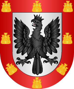 Linaje castellano, de Soria. Armas De plata, un águila de sable coronada de lo mismo. Bordura de gules con ocho castillos de oro. |