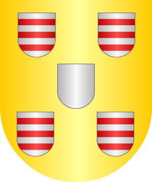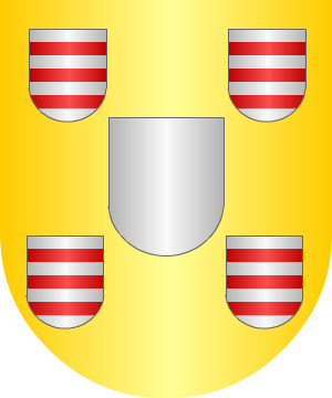 de plata con tres fajas de gules. 2.- Algunos interpretan el escudo anterior en esta otra forma: Algunos interpretan ese escudo en esta otra forma: De oro, con cinco escudetes puestos sotuer: el del centro, de plata liso y más grande que los otros, y los de los cantones, también de plata, con tres fajas de gules. 3.- Otros, según Francisco Piferrer, traen: En campo de oro, cinco escudetes de plata, uno cada cantón, cargado con tres fajas de sable, y uno sin fajas en el centro o abismo. 4.- Los Condes de Cirat, usan: Escudo jaquelado de quince piezas de oro y azur. Bordura de gules con ocho aspas, de oro. 5.- Los Carrós, de Valencia, traen: Escudo cuartelado: 1º y 4º, de oro pleno, y 2º y 3º, fajado de oro y sable. 6.- Los Carroz, de Valencia, según Vicente de Cadenas, traen: En campo de sinople, una banda, de oro, engolada en dragantes, de gules. 7.- Otros, en Cataluña y Valencia, usan: Escudo cuartelado: 1º y 4º, cuartelados a su vez con los cuarteles primero y cuarto, de oro, sin figuras y con los cuarteles segundo y tercero: fajados de tres piezas de oro y tres de gules, y 2º y 3º, de plata, con un león rampante de gules. 8.- Otros, en Cataluña y Valencia, usan: Escudo cuartelado: 1º y 4º, cuartelados a su vez con los cuarteles primero y cuarto, de oro, sin figuras y con los cuarteles segundo y tercero: fajados de tres piezas de oro y tres de sable, y 2º y 3º, de plata, con un león rampante de gules. 9.- Otros Carrós: Escudo cuartelado: 1º y 4º, cuartelados a su vez: primero y cuarto, de oro, y segundo y tercero, de oro, con tres fajas de sable, y 2º y 3º, en campo de plata, un león rampante, de gules, lengua de lo mismo, armado de sable. 10.- Otros Carrós, traen: En sinople, un león armado de gules. Bordura dentellada de oro. 11.- Los de la casa de Alcudia, en Mallorca, tienen: Escudo cuartelado: 1º y 4º, de oro, con dos fajas de gules, y 2º y 3º, de oro, sin figuras. 12.- Otros Carrós, de Cataluña, usan: En campo de sinople, un león de oro, membrado y armado de gules. Bordura dentellada de oro. 13.- Otros Carrós, de Cataluña, modifican la bordura: En campo de sinople, un león de oro, membrado y armado de gules. Bordura dentellada de sinople. 14.- Los Carrós, de Cataluña, usan: En campo de plata, una mata de arroz con cinco espigas, arrancada, de sinople. 15.- Otros Carroz, en Aragón, ostentan: En campo de oro, dos palos de gules. Bordura cosida de oro, con nueve leones rampantes de azur. 16.- Otros Carroz, también en Aragón, usan: Escudo terciado en palo: 1º, en campo de oro, con cuatro palos de gules; 2º, campo de plata, con un árbol de sinople, y 3º, fajado de oro y gules, de seis piezas; medio cortado de oro. 17.- Otros Carroz: En campo de oro, un águila, de sable, con su ala diestra y garra siniestra, cargadas de una flor de lis de oro, y las del lado contrario igualmente cargadas de un roble de sinople. 18.- Los Carroz-Arbea, de Aragón, según el Conde de Doña Marina, usan: Escudo en tres palos: 1º, en campo de plata; 2º, en campo de plata con un árbol de sinople, y 3º, partido en faja; el jefe fajado de seis piezas de oro; punta de oro. 19.- Otros Carrós: Escudo partido: 1º, en campo de oro, cuatro palos de gules, y 2º, cortado: primero, en campo de plata, un laurel arrancado, de sinople, y segundo, cuartelado: primero y cuarto, de oro, con tres fajas de gules, y segundo y tercero, de oro. 20.- Otros Carrós: Escudo cuartelado: 1º y 4º, cuartelados a su vez: primero y cuarto, de oro, y segundo y tercero, de oro, con tres fajas de gules, y 2º y 3º, en campo de plata, un león rampante, de sable. Información de estos linajes complementada por cortesía de blasonari.net |