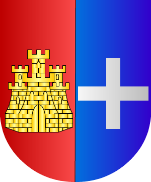 y dos. 12.- Otros indican que usaba el citado caballero Fernández de Castro: En campo de sable, cinco bezantes de plata. 13.- Otros: En campo de plata, cinco roeles de azur, puestos en aspa. 14.- Otros traen: En campo de azur, dos castillos de plata el uno sobre el otro. 15.- Los Castro de Cataluña, con casa en Barcelona, traen: En campo de azur, una faja de plata cargada con el lema VIRTUTE PROPIA en letras de sable y acompañada de dos castillos de plata. 16.- Los de Cataluña, traen: Escudo cuartelado: 1º y 4º, de gules, un escudete de oro con una faja de gules; 2º y 3º, de gules, un castillo de oro abierto del campo. 17.- Otros, de Cataluña, usan: En campo de plata, tres bandas de sinople. 18.- Otros, también en Cataluña, usan: En campo de plata, tres bandas de sable. 19.- Otros: En campo de azur, seis bezantes de oro. 20.- Otros: En campo de azur, seis bezantes de oro, puestos uno, dos, dos y uno. 21.- Los Castro de Portugal traen: En campo de oro, trece roeles de azur, puestos tres, tres, tres, tres y uno. 22.- Otros: En campo de plata, trece roeles de azur, puestos tres, tres, tres, tres y uno. 23.- En una piedra armera de Guimerá (Lérida) constan las siguientes de armas de CastroPinós: Escudo cuartelado: 1º y 4º, en campo de oro, cuatro palos de gules, y 2º y 3º, en campo de gules, una cometa de oro, puesta en palo. Sobre el todo un escusón de oro con tres pinos de sinople y bordura de gules. 24.- Los Castro Pinós, descendientes de ese mismo tronco, ostentan: Escudo cuartelado: 1º y 4º, en campo de oro, dos palos de gules, y 2º y 3º, en campo de azur, un cometa de plata. Sobre el todo, escusón de oro, con tres piñas de sinople puestas en triángulo y bordura de gules. 25.- Algún tratadista pinta de gules el campo de los cuarteles segundo y tercero, quedando en la siguiente forma: Escudo cuartelado: 1º y 4º, en campo de oro, dos palos de gules, y 2º y 3º, en campo de gules, un cometa de plata. Sobre el todo, escusón de oro, con tres piñas de sinople puestas en triángulo y bordura de gules. 26.- En el Castillo de Genzor, del Condado de Guimerá, constan las siguientes armas de Castro-Pinós: Escudo cuartelado: 1º y 4º, en campo de oro, dos palos de gules, y 2º y 3º, en campo de azur, un cometa de plata. Sobre el todo, escusón de oro, con tres piñas de sinople bien ordenadas, y bordura de gules. 27.- Los Condes hereditarios de Lemos tienen ese mismo escudo de los seis roeles de azur en campo de plata, partido de Osorio y con una bordura general de oro con ocho escudetes de Enríquez. 28.- Los Condes de Arjona usan: Escudo cortinado: 1° y 2°, en campo de plata, un león de gules, coronado, en cada uno de ellos y afrontados. Cortina de gules, con un castillo de oro, aclarado de azur. 29.- Los Pereira de Castro, en Galicia, de las casas de la villa de Allariz (Orense) y de Vigo (Pontevedra) y sus ramas de Canarias, Argentina y Chile, cuartelan las armas de Castro de los seis roeles de azur en campo de plata, con las armas de Pereira, que son: En campo de plata, una cruz floreteada y hueca de gules, como la de Calatrava, y bordura de plata, con cinco escudetes de azur, con las quinas de Portugal, de plata. 29b.- Algunos ponen ocho escudetes.30.- Juan Baños de Velasco manifiesta que los Castro-Montoya, de Álava, usaron: En campo de azur, diez panelas de plata, y el cordón de San Francisco, del mismo metal, puesto en situación de orla. 31.- Miguel de Salazar consigna que algunos Castro de la casa de Burgos sustituyeron el escudo de los seis roeles de azur en campo de plata, con este otro: Escudo partido: 1º, en campo de gules, un castillo de oro, y 2º, en campo de azur, una cruz llana de plata. 32.- Los Castro de Bilbao y de las Encartaciones de Vizcaya, según el Doctor Estanislao Jaime de Labayru, tenían: Escudo cuartelado: 1º y 4º, en campo de plata, un roble de sinople, y 2º y 3º, en campo de azur, un lobo de sable, y en punta, una cruz de Calatrava de oro. 33.- Otros: Escudo cuartelado: 1° y 4°, en campo de plata, un roble de sinople y un lobo de sable, y 2° y 3°, en campo de azur, una cruz de Calatrava de oro. 34.- Los Castro de Gistaín, de Laluenga (Huesca), usan: Escudo cuartelado: 1º, en campo de gules, un castillo de plata; 2º, en campo de oro, una encina terrasada de sinople, sumada de una cruz de gules de Sobrarbe; 3º, en campo de azur, un brazo dextrogero armado con manga corta de plata, mostrando su antebrazo y mano de carnación que empuña un alfanje de plata, y 4º, en campo de sable, una banda fileteada de plata, acompañada de dos estrellas de lo mismo, uno en lo alto y otra en lo bajo. 35.- En el expediente de limpieza de sangre para ingresar en el monasterio de Sigena (Huesca), de Manuela María de Castro e Yurramendi, bautizada el 30 de Septiembre de 1643, en 1659, constan las siguientes armas: En campo de azur, un castillo de oro. Bordura de plata con ocho aspas de azur. Era hija de Diego de Castro y de Isabel La Torre y de Ursula de Yurramendi y Bonal y nieta paterna de Fernando de Castro y de Isabel La Torre. 36.- Los descendientes de un caballero llamado Fernando González de Castro, hijo del Rey don Jaime de Aragón, usaban: Escudo cuartelado: 1º y 4º, las armas de Aragón, y 2º y 3º, en campo de plata, una estrella de gules de ocho puntas y la punta ondeada, armas de Castro. 37.- Los de Banastón, Monzón, Torres de Montes, Zaragoza, Ejea de los Caballeros, Ariza y Belchite, usan: Escudo cuartelado: 1º y 4º, en campo de oro, cuatro bastones de gules, y 2º y 3º, en campo de plata, una estrella de gules y una flámula hacia abajo. 38.- Otros, de Aragón, traen: En campo de plata, una estrella de gules con una flámula hacia abajo. 39.- Otros: En campo de oro, una encina, de sinople, con una caldera, de sable, pendiente de una cadena, del mismo color, de las ramas de la encina. 40.- Los originarios de Santa María de Vigo (La Coruña), según Vicente de Cadenas, usan: Escudo cuartelado: 1º, en cam