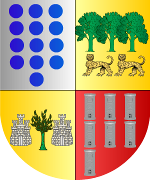 Ceballos Cevallos Seballos Sevallos Zeballos Zevallos NOTA: Este asterisco tras el número(*) indica que los colores originales no están disponibles en su descripción, por tratarse probablemente de escudos en piedra o en otros materiales no policromados. Hemos incluído los esmaltes más habituales de los linajes Ceballos y en su defecto, los habituales en heráldica (plata y azur para el agua, por ejemplo). Linaje muy antiguo, originario de la Merindad de Trasmiera, en la que tuvo su primitivo solar, del que dimanaron ilustres casas de la región de Cantabria, a la que pertenecía también la citada Merindad. Uno de los caballeros famosos de este apellido fue Fernán Martínez de Ceballos, que ganó la villa de Alarcón (Cuenca) a los moros. La casa de Ceballos, en Cianca, "era toda de piedra de sillería, de mucha autoridad y antigüedad, con mucho sitio alrededor de ella cercado de piedra y en sitio eminente a todas las del valle". Así se dice en el expediente del Caballero de Alcántara Domingo Antonio Mora y Ceballos, originario de dicha casa y natural del valle de Castañeda. En otro expediente del Caballero de Santiago Antonio Velarde y Ceballos, se añade que la casa de Cianca "era alta, con capilla dentro de la misma, muy bien adornada". Otras muchas casas fundaron los de este linaje en Cantabria, y a continuación citamos algunas. En el lugar de Aés, del valle de Toranzo (Cantabria), estuvo la torre de Ceballos el Caballero o del Caballero, a orillas del Pas y situada sobre un peñasco. La casa vivienda estaba al lado de la torre, y frente a ella levantaron "una iglesia pequeña, cubierta de hiedra, cuya advocación es Santa Ana, de la cual dijeron tener el patronato los Señores de ella, los que tienen sus entierros en la capilla mayor, en la que hay dos sepulcros muy levantados de piedra de sillería, con unos letreros antiguos que; no se pudieron leer, y uno y otro reconocimos son antiquísimos, como lo manifiesta la fábrica". Así se consigna en las declaraciones de testigos que figuran en el expediente del Caballero de Santiago Francisco Antonio Ceballos, Consejero del Real de Ordenes. Cerca de la iglesia parroquial de Aés había otras casas de Ceballos con el mismo escudo que la anterior. También tuvo palacio esta familia de Ceballos el Caballero en el lugar de San Andrés de Argomilla, del Ayuntamiento de Santa María de Cayón (Cantabria), que tenía "coto redondo de más de un cuarto de legua, con jurisdicción propia y separada". El pariente mayor de la casa era Abad perpetuo y patrono de la iglesia, y disfrutaba de los diezmos de Santelices y la Penilla y el patronato de San Martín de Posadorios. Otra casa de Ceballos radicó en Santa María de Cayón, del citado partido de Villacarriedo, y acerca de ella se encuentran estos datos en las declaraciones contenidas en el expediente del Caballero de Santiago Fernando Mirones Ceballos: "Hallamos ser una casa grande, de cuatro aguas, con su torre al lado derecho, con su coto y término redondo, dentro del cual hay una iglesia que denota gran antigüedad, con el título de San Martín de Riaño. Tienen los Señores de esta casa sus entierros a los lados de la Epístola y del Evangelio, embutidos en la pared, con sus bustos, y en la puerta de ella, como en la de la casa, están las armas". Distante medio cuarto de legua de esa casa, en la jurisdicción del lugar de San Román, perteneciente al Ayuntamiento de Santa María de Cayón, estaba sita la casa de Ceballos, llamada de Venero, de la que se dice en el mismo expediente de Santiago lo siguiente: "Hallamos ser una torre cuadrada, alta, con su cosa llana, sus troneras y barbacana; término y coto redondo y el mismo escudo de armas que la anterior, lo cual denota también mucha antigüedad y nobleza". De otra casa de este linaje, sita en el lugar de Laspresillas, del Ayuntamiento de Puenteviesgo (Cantabria), procedió el Caballero de Santiago Jerónimo de Ceballos, en cuyo expediente de pruebas declaran los informantes: "Reconocimos que (la casa) es una torre de cuatro esquinas muy antigua, con sus almenas a modo de muralla, con una ermita al lado de dicha torre y dos casas bajas: la una, al lado derecho de la torre, y la otra, en frente, y dicha torre mira al saliente y tiene un patio cercado con muralla y en medio un pozo, y por detrás un cercado muy crecido de por sí y frente un monte, y para entrar en dicha casaha y portada y encima de ella las armas de Ceballos". Esas mismas armas, que más adelante detallaremos, se veían también en la clave de la bóveda de la iglesia de San Nicolás, de Laspresillas. En el lugar de Castañeda, del valle de Castañeda, hubo otra casa de este linaje, de la que fue Señor Juan Antonio de Ceballos y Miera, y acerca de la cual se dice en el expediente del Caballero de Santiago el Capitán José Clemente Ceballos y García, hijo de dicha casa, lo que sigue: "Era una torre de tres suelos, como de sesenta pies en cuadro, toda de piedra de sillería, circunvalada de paredes fuertes a cal y canto a manera de murallas, con cubos y almenas correspondientes a trechos. Todo indica mucha antigüedad, como de casa solariega. Frente a dicha torre, dentro del patio amurallado, una ermita del glorioso apóstol Santiago, y en el lienzo de la torre que miraba a la ermita, un escudo". En el lugar de Villafufre, del valle de Carriedo, radicó una antigua casa de Ceballos. Otra, sita en la ciudad de Santander, poseía la capilla de La Concepción, en el convento de San Francisco. Otra, en el lugar de La Concha, del partido judicial de Santander, recayó en el apellido de Bárcena y Velasco. Tenía el patronato de la capilla de La Concepción, de la parroquia de La Concha. También se establecieron los Ceballos en las Asturias de Santillana, y tuvieron casas en el valle de Buelna (Cantabria), de la que dimanaron los de San Felices de Buelna y Somahoz, lugares del mismo valle; en Barreda, Santillana y Curtes, villas del mismo partido de Torrelaveg