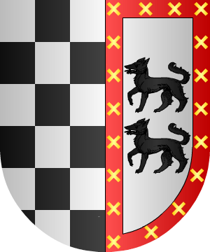 y sobre el todo, un escusón de oro, con un águila, de sable, en
