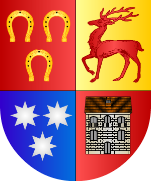 1º, y 4º, en campo de oro, un ciervo pasante, de gules, y 2º