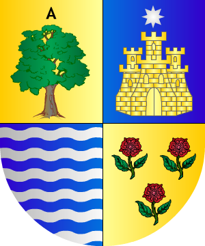 y 3º, en campo de plata, un árbol de sinople, llamado "cervera",