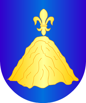 de azur, un león rampante de oro, acompañado de nueve flores de