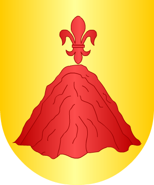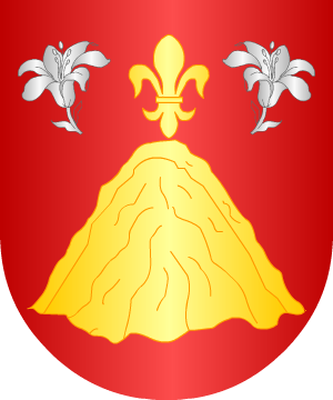 de azur, un león rampante de oro, acompañado de nueve flores de