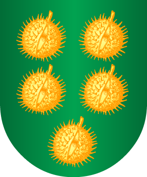 de gules. 19.- Los Clemente de Murcia tienen: Escudo partido: 1º, en campo de oro, una banda de sinople cargada de tres flores de lis de oro, y 2º, en campo de plata, dos llaves, una de azur y otra de gules, puestas en sotuer. 20.- En el Archivo Municipal de Murcia constan: Escudo partido: 1º, en campo de oro, una banda de sinople cargada de tres flores de lis de oro, y 2º, en campo de plata, dos llaves de gules, puestas en banda. 21.- Otros: En campo de sinople, cinco castañas, de oro, puestas dos, dos y una. 22.- Los Clemente, radicados en Granada, según Vicente de Cadenas, usan: En campo de azur, sobre terrasa de sinople, un ciervo, parado, de oro. 23.- Otros Climent: Escudo partido: 1º, un árbol arrancado de tres ramas, y 2º, un ciervo en salto. 24.- Algunos Climent: Escudo cortado: 1º, en campo de azur, una mata, de oro y 2º, en campo de plata, un lobo, de sable. 25.- Los Clemente, de Portugal, usan: En campo de azur, siete estrellas de seis rayos de oro, puestas una, dos, una, dos y una. Timbre: Una estrella del escudo. 26.- Los Climente, originarios de Sangüesa (Navarra), según Vicente de Cadenas, traen: Escacado de veinte compones, diez de oro y diez de gules. 27.- Los Climente, según José Pellicer y Tobar, usan: En campo de azur, tres escobas de plata con ataderos de gules, perfilados de oro. Bordura de gules con ocho aspas de oro. 28.- Los Clement: En campo de oro, una cruz llana, de gules, que cuartela el escudo y en cada cuartel, un águila, de azur. 29.- Los Clemente Cabeza de Vaca de Mula y Cartagena, originarios de Aragón, ostentan: Escudo partido: 1º, en campo de gules, dos fajas de oro; en el jefe, dos estrellas del mismo metal puestas en situación de faja, y en punta, un ramo de tres peras de oro, que algunos pintan de su color natural, por Clemente, y 2º, en campo de oro, una cabeza de vaca de gules y adiestrada; medio cortado y jaquelado de oro y gules, por Cabeza de Vaca. 30.- En el expediente del Caballero de la Orden de Santiago Nicolás Alvarez de la Barreda y Clemente de Aróstegui, natural de Villanueva de la Jara, consta que este linaje fue reconocido en las casas de su propiedad en Villanueva de la Jara, sitas en la calle mayor y también en el convento de San Francisco de dicha villa, "tiene dos cuarteles, en el de la derecha un pino en campo de oro y dos perros unidos al tronco, y en el de la izquierda dos estrellas en campo de plata". 31.- En el expediente de hidalguía de Alonso Clemente y Pérez, natural de Horche (Guadalajara), año 1760, constan las siguientes armas: Escudo cuartelado: 1º y 4º, en campo de plata, un águila con las alas extendidas con pie y pico de oro, y 2º y 3º, en campo de azur, una corbeta de oro con su cadenilla. 32.- El Chantre Climent, de Aragón, usaba: "Cruces blancas en campo vermello y un castillo en cárdeno". Información de estos linajes complementada por cortesía de blasonari.net |