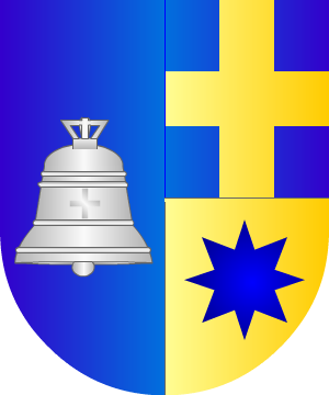 Juan Baños de Velasco: Escudo partido: 1º, de azur, con una campana