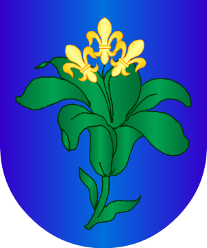 de oro, un monte, de sable, sumado de un pino, de sinope; jefe de azur, cargado