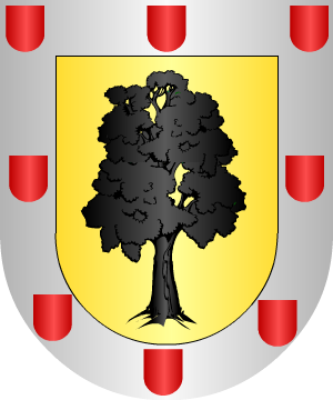 con media flor de lis de plata y un ala de oro. 6.- Otros: En campo de oro, un pino sumado de la imagen de la Virgen de la Inmaculada Concepción; al pie del pino un buey pasante. Bordura de oro cargada de ocho escudetes de gules partidos, con media flor de lis de plata y medio vuelo de oro, unidos en la línea de intersección. 7.- Otros, según Jorge de Montemayor, traen: En campo de oro, un árbol de sable. Bordura de plata con ocho escudetes de gules. 8.- Otros: En campo de plata, ondas de azur y plata y sobre ellas, un pez, de su color. 9.- Otros: En campo de oro, una encina, de sinople, arrancada y acompañada de una espada, en la diestra. 10.- Los de Ávila, según Rietstap, traen: De plata, un palo, de gules, cargado de dos besantes, de oro. 11.- Los de Aragón, según Rietstap, usan: De oro, un árbol arrancado, de sinople. 12.- Otros de Aragón, según Rietstap, traen: De azur, un árbol de sinople, terrasado de lo mismo y frutado de oro. Bordura de gules, cargada con ocho escudetes de azur, cargado cada uno de tres flores de lis, de oro, bien ordenadas. 13.- Los de Castilla, según Rietstap, usan: Escudo cuartelado: 1º y 4º, de plata con un árbol de sinople, terrasado de lo mismo y frutado de oro, acompañado de un lobo pasante, de sable, atravesado al tronco; 2º y 3º, de azur, cinco veneras, de oro, colocadas en aspa. 14.- Otros, según Rietstap, traen: Escudo partido: 1º, de azur, un tallo de castaño, de oro, frutado de cinco castañas, de lo mismo, colocadas una, dos y una, terrasado de sinople, y un perro pasante, de oro, atravesado; 2º, de azur, cinco veneras de oro, colocadas en aspa. 15.- Los de Milán, según Rietstap, traen: Escudo cortado: 1º, de oro, un águila de sable, coronada de oro; y 2º, de azur, una faja, de oro, cargada de una C de azur. 16.- Otros de Milán, según Rietstap, usan: Escudo cortado: 1º, de oro, un águila de sable; 2º, de gules, tres bandas, de plata; brochante sobre el centro del escudo, una faja, de azur, cargada de dos C góticas, de plata. 17.- Los de Lombardia, según Rietstap, traen: De oro, un tenedor, con mango corto y adornado, de gules, de dos dientes (puntas), sumado de una corona del mismo color, y acompañado de tres castañas de gules, colocadas, dos en los flancos y una en punta. 18.- Los de Sicilia, según Rietstap, usan: De azur, una rama de castaño, frutada de cinco castañas colocadas una, dos y una, todo de oro, sobre una terrasa de sinople. 19.- Los de Roma, según Rietstap, traen: En campo de oro, una banda de gules, cargada de tres bezantes, de oro. 20.- Otros de Roma, según Rietstap, traen: De azur, un árbol de sinople, terrasado de lo mismo y frutado de oro, con un unicornio pasante, de oro, atravesado al tronco, en jefe una estrella, de oro. 21.- Los de Nápoles, según Rietstap, usan: De azur, un árbol de sinople, frutado de oro, acompañado de dos leones rampantes y afrontados, del mismo color, todo sobre una terrasa de sinople. 22.- Otros de Nápoles, según Rietstap, traen: De azur, una faja de oro, acompañada en jefe de tres veneras, de oro, colocadas en faja, en punta tres bandas de oro. 23.- Los de Venecia, según Rietstap, usan: De oro, un árbol de sinople, frutado de oro. 24.- Los de Bolonia, según Rietstap, usan: De azur, una faja de gules, acompañada en jefe de las letras O C del mismo color. Jefe de oro, cargado de un águila de sable, coronada de oro. 25.- Otros de Bolonia, según Rietstap, traen: De azur, una campana de plata, acostada de dos leones rampante y afrontados de oro. Jefe de azur, cargado de tres flores de lis, de oro, colocadas entre los huecos de un lambel de cuatro puntas, de gules. 26.- Los de Francia, según Rietstap, usan: De gules, una castaña, de oro. 27.- Los de Flandes, según Rietstap, traen: De oro, tres bandas, de gules, acompañadas de dos roeles, de sinople, una en el jefe a la siniestra y el otro en punta a la diestra. 28.- Los de Colonia, según Rietstap, usan: De sinople, diez bezantes, de oro. 29.- Los de Bohemia, según Rietstap, traen: De azur, cinco bezantes, de oro, colocados en aspa. 30.- Los de Hungria, según Rietstap, usan: De azur, una barra, de gules, brochante una banda, de plata; el sotuer formado cantonado de cuatro bezantes de oro. Información de estos linajes por cortesía de blasonari.net |