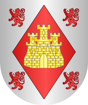 oro. Estas mismas armas usaban los de Ubeda. 13.- Otros traen: Escudo mantelado: 1º, en campo de azur, tres flores de lis de oro, bien ordenadas; 2º, en campo de oro, dos palos de gules, y 3º, o mantel, de plata con una boca de cueva, saliendo de ella un dragón fiero de sinople echando llamas por la boca, y medio salido, sin la bordura. 14.- Los de Ubeda, según Bernardo de Estrada y Nava, traen: Escudo mantelado: 1º, en campo de azur, tres flores de lis de oro, mal ordenadas; 2º, en campo de oro, cuatro bastones de gules, y 3º, en campo de sinople, un dragón de oro saliendo de una cueva oscura. 15.- Los de Alcorisa (Teruel) usan: Escudo mantelado: 1º y 2º, en campo de oro, dos palos de gules, y 3º, o manteladura, de azur, un dragón de oro, linguado de gules. Bordura de gules con ocho sotueres de oro. 16.- Los Duques de Alburquerque usan: En campo de plata, y en el medio de él una lisonja de gules cargada de un castillo de oro; y en los cuatro ángulos, leones rampantes de púrpura. 17.- Otros usan: En campo de plata, y en el medio de él una lisonja de gules cargada de un castillo de oro; y en los cuatro ángulos, leones rampantes de gules. 18.- En la casa llamada del Patriarca, calle del campo o Sopuente, de la villa de Selaya, del valle de Carriedo (Cantabria), constan: Escudo mantelado: 1º, tres flores de lis, mal ordenadas; 2º, tres palos, y 3º, o manteladura, una cueva y un dragón que saca la cabeza por ella. 19.- En la calle de la Carrera, de Santillana del Mar, constan: Tres palos que apoyan en una ojiva o boca de cueva por la que asoma un dragón. 20.- En la torre llamada de Beltrán de la Cueva, del lugar de Queveda, del municipio de Santillana del Mar (Cantabria), constan: Un guerrero montado en su corcel, que introduce su lanza en la boca de un dragón, todo sobre ondas de agua, con una inscripción que dice "Cueva". 21.- A pedimento de Toribio Pérez de Bustamante, que era Señor de la Casa de Cueva en Queveda en 1649, se certifican las armas de esta casa por Juan Francisco de Hita, de esta forma: En campo de azur, una torre de oro, orpasada de gules sobre un risco al natural, y al pie de ella una gruta y a su puerta tres cabezas de moros con turbantes de plata y gules. 22.- Don Enrique IV de Castilla concedió a Beltrán de la Cueva, primer Duque de Alburquerque, primer Conde de Ledesma y de Huelma, las siguientes armas: Escudo cortado bajado: 1º, en campo de oro, cuatro palos, de gules, y 2º, en campo de sinople, una cueva, de sable, de la que sale un dragón, de oro, lampasado de gules. 23.- Otros añadieron una bordura de gules con ocho sotueres de oro. Complemento de información de estos linajes por cortesía de blasonari.net |
