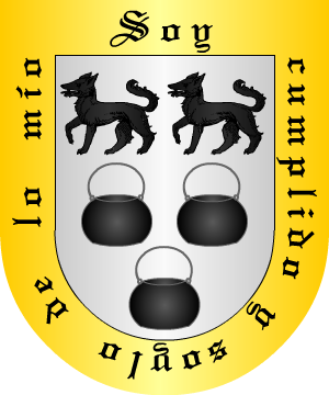 Apellido extremeño, con casas solares en Cáceres y Trujillo (Cáceres) y en Zafra, Almendral y Jerez de los Caballeros (Badajoz). Pasaron a Andalucía y fundaron una nueva casa en Jerez de la Frontera (Cádiz). Gonzalo Rodríguez Cumplido, natural de la villa de Almendral (Badajoz), obtuvo el 3 de abril de 1571 Ejecutoria de Nobleza en la Real Chancillería de Granada. Juan Cumplido Lovo, vecino de La Palma, probó su nobleza ante la Real Chancillería de Granada en 1697. Francisco Cumplido y Benítez de Lacida, nacido en Jerez de la Frontera (Cádiz), ingresó en la Real Compañía de Guardias Marinas en 1721. Era hijo de Diego Gómez Cumplido y de Faustina Benítez de Lacida. Armas 1.- Los de Trujillo y Zafra usaron: En campo de oro, una banda de azur engolada en cabezas de dragones de sinople, linguados de gules y acompañada de dos rosas de gules, una a cada lado. 2.- Los de Jerez de los Caballeros, Almendral y Jerez de la Frontera, ostentaron: En campo de plata, tres calderas de sable puestas en triángulo y surmontadas de dos lobos del mismo color, andantes. Bordura de oro, con esta leyenda en letras de sable: “Soy cumplido y soylo de lo mío”. 3.- Otros: En campo de gules, dos leones, de oro, rampantes y puestos en faja. Información de estos linajes complementada por cortesía de blasonari.net |