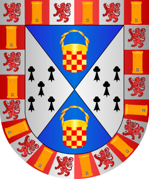 De Guzmán Guzmán Procedente de Alemania según unos, y, procedente del rey godo Gundemaro. según otros. Frías de Albornoz sostiene que procede de un príncipe de Bretaña llamado Gutiman. Argote de Molina afirma que en el año 950 el conde D. Nuño Muñoz fundó en Roa de Duero (Burgos) y en el lugar de Guzmán, el primitivo solar de esta Casa. A este linaje perteneció Santo Domingo de Guzmán. Probó nobleza en repetidas ocasiones en todas las Órdenes Militares. Armas 1.- Cuartelado en sotuer, 1º y 4º de azur, una caldera de oro jaquelada de gules con siete cabezas de sierpe en cada asa; y 2º y 3º de plata, cinco armiños de sable puestos en aspa. 2.- Los duque de Medina-Sidonia añaden bordura de jaqueles de plata con leones de gules y de gules con torres de oro aclaradas de azur. 3.- Los de Toral traen: De azur, un castillo de oro. Bordura de plata con armiños de sable. 4.- Los de Jaén traen: De plata, cinco armiños de sable en sotuer. Bordura de azur con ocho aspas de oro. 5.- Los de León traen: De azur, dos calderas jaqueladas de oro y gules. Bordura de plata con armiños de sable y leones de púrpura alternando. |