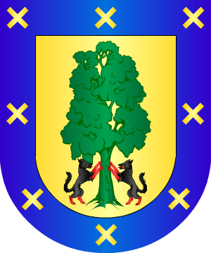 tres flores de lis de oro, puestas en triángulo. Bordura de ocho compones,