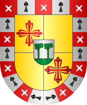rampante de su color, con una caldera de sable en la mano izquierda. 15.- Juan de Esteve y de Pera usaba: En campo de oro, un grifo rampante de gules. 16.- Los Esteve, de Castellón, usan: En campo de azur, un pico de hierro, de oro, puesto en palo. 17.- Los Esteve, de València, traen: Escudo cortado por una faja de sable y en su parte superior de plata, un pájaro al natural iniciando el vuelo para volar y abajo en azur dos picos de hierro de oro, puestos en faja, uno sobre otro. 18.- Los Esteve, radicados en Ciudad Real, según Vicente de Cadenas, usan: En campo de plata, dos bastones, de gules. 19.- Los Estévez, de León, según Vicente de Cadenas, usan: En campo de plata, una barra, de gules, acompañada en lo alto de una caldera, de sable, y en punta de una estrella, de azur. 20.- Los Estévez, de Castilla, según Vicente de Cadenas, traen: En campo de oro, un jabalí, de sable atacado por tres lebreles, de su color que lo muerden. 21.- Algunos Estévez: En campo de gules, un águila de plata, armada de sable. 22.- Otros: Una flor de lis y ambos lados sumados de dos pájaros, afrontados y con las cabezas contornadas. Complemento de información de estos linajes por cortesía de blasonari.net |