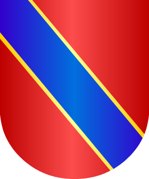 tiene en su boca un poco de hierba de sinople. 2.- Otros: En campo de oro, una faja, de plata, perfilada de gules. 3.- Otros: en Campo de gules, un caballero de plata, sobre caballo, de sable. Complemento de información de estos linajes por cortesía de blasonari.net |