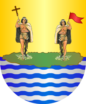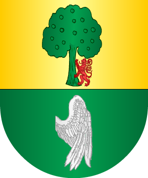 Cortado: 1º, de azur, una cruz, de oro, medio partido, de oro, espada de plata, acompañada de seis panelas de sinople; 2º, de gules, con un árbol de su color y empinante a su tronco un león, también de su color. Bordura con ocho aspas (se desconocen los esmaltes). (Ref.: GARCIA CARRAFA). |