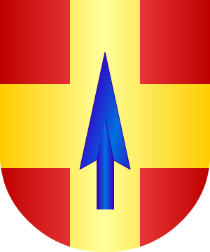 En gules, una cruz de oro, cargada de una punta de lanza, en azur. (Ref.: CADENAS). |
