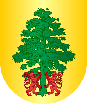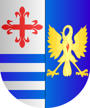 Asturiano. Partido: 1º, en plata, tres fajas estrechas de azur, acompañadas, en lo alto, de una cruz floreteada de gules, rampante, y 2º, en azur, una garza de oro picándose el pecho, que muestra herido. (Ref.: GARCIA CARRAFA), (ref.: ATIENZA), (ref.: GONZALEZ-DORIA), (ref.: CADENAS). |