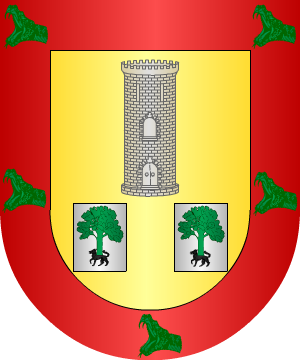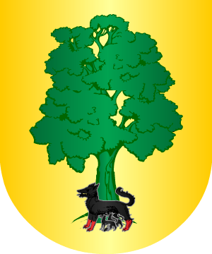 Castellano, de las montañas de León. Armas Traen en campo de plata, una encina de sinople y dos lobos de sable arrimados a ella. |