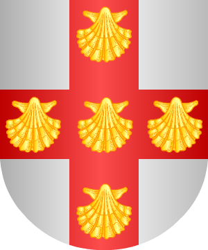 1º, en campo de sable, siete bezantes de oro, puestos en dos palos y uno