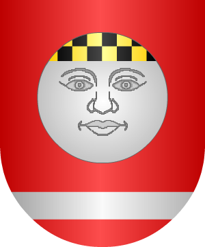 1.- Escudo cortado en faja: en cabeza, en campo de azur, dos leones acostados y afrontados de oro, sumados de dos estrellas de seis puntas de plata y azur, en punta, en campo de oro, los cuatro bastones de gules aragoneses.