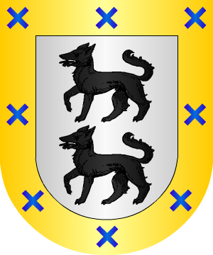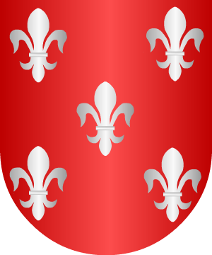 En campo de gules, cinco flores de lis de plata puestas en sotuer. (Ref.: GARCIA CARRAFA). |