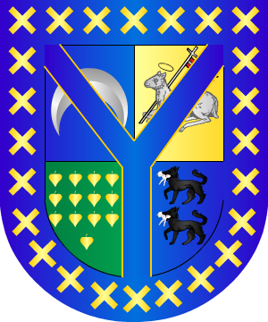Aragonés. De la ciudad de Zaragoza. Partido: 1º, cortado en faja: en cabeza, de plata, cuatro bandas de azur, en punta, de oro, cinco lises de azur; 2º, de oro, dos lobos de sable cebados de gules. (Ref.: Bizén de O’Río). |