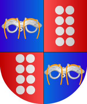 En oro, un árbol, arrancado, de sinople, con dos lobos, de sable, pasantes. (Ref.: CADENAS). |