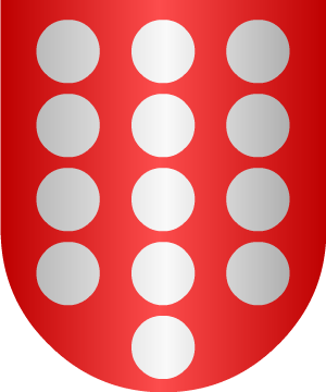 En azur, 13 bezantes, de oro, puestos en cuatro fajas de tres y uno en punta. (ref.: CRESPO DEL POZO). |