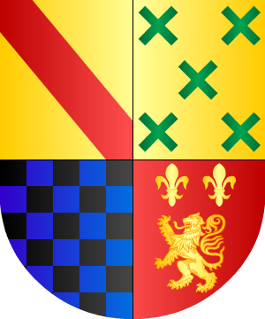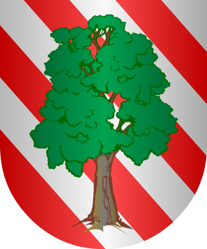 En campo de gules un castillo de oro, aclarado de azur y saliendo de la torre del homenaje, un brazo armado, de plata, con una espada en la mano; en el cantón diestro del jefe, cuatro panelas de oro, puestas en dos palos, y en el cantón siniestrado, un flor de lis del mismo metal. (Ref.: ATIENZA), (ref.: GONZALEZ-DORIA), (ref.: CADENAS). |