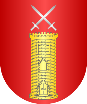 En gules, una torre, de oro, surmontada de dos espadas, en aspa, de plata. (Ref.: CADENAS). |