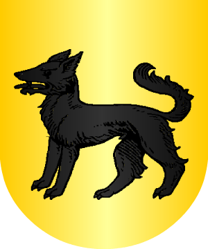 oro, un lobo de sable, bordura de ocho compones de sable; 2º, de gules,