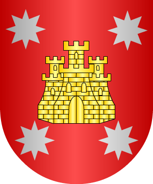 Extremeño, de Santa Cruz de la Sierra, en la provincia de Cáceres. Armas 1.- De gules, con un castillo de oro, cantonado de cuatro estrellas de plata. 2.- Otros: En campo de azur, cinco torres, donjonadas, de plata, puestas en aspa. Bordura de gules, con ocho puntas de pica, de oro. |