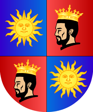 de Montealegre. Armas: Escudo cuartelado en aspa de plata y azur, dividido por un aspa