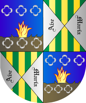 Apellido de origen gallego. Armas Cuartelado; 1.° de oro, dos bandas de gules; 2° también de oro, tres amacayos de azur; 3.° igualmente de oro, una cruz floreteada de gules y 4°, del mismo metal, trece roeles puestos en fajas de a tres y uno en punta. |